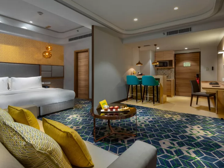 Step into a world of elegance the moment you arrive. Sparkling chandeliers and a warm welcome set the tone for a memorable stay. Our spacious and stylish guest rooms — the largest in the city — feature a media hub, 32-inch flat-screen LCD TV, and all modern amenities to ensure your comfort.